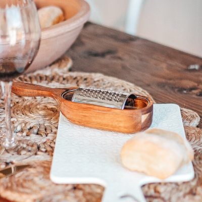 Die schöne und funktionale Reibe im dänischen Landhausstil aus Akazienholz ist nicht nur schön, sondern auch praktisch.
